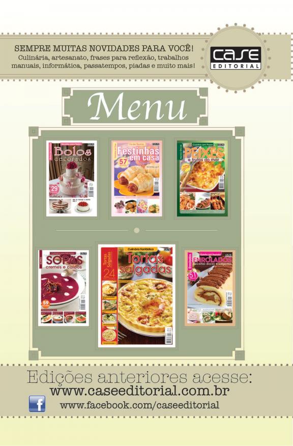 A revista é recheada com as melhores receitas: típicas de diversas regiões, doces, salgados e edições especiais para as principais comemorações como Natal, Ano Novo e Páscoa.  Veja como criar o seu próprio negócio a partir das nossas receitas e dicas de empreendedorismo.